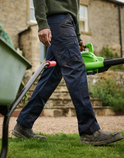 ·povrch odpudzujúci vodu ·čiastočne elastický pás a pútka na opasok ·zapínanie v rozkroku na zips ·spevnené švy v rozkroku ·2 predné vrecká (1 malá na mince), multi vrecká na zips, postranné vrecká na zips, 2 zadné vrecká ·vrecká na nákolenníky ·zosilnené trojité prešitie pre odolnosť materiálu