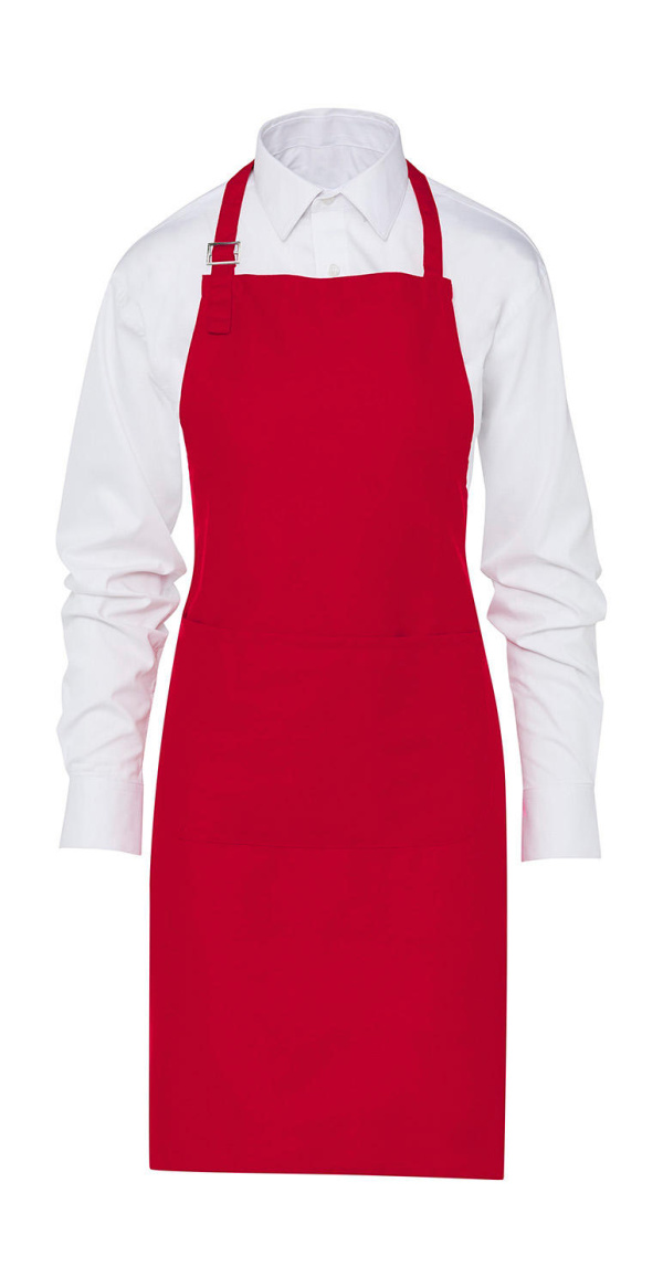 ·200 g/m² ·100% bavlna ·funkčná, ľahká zástera ·spona na nastavenie pásly pri krku ·našité vrecko ·obšité popruhy na zaviazanie ·rozmery: 71 x 85 cm ·prateľná pri teplote až do 40 °C