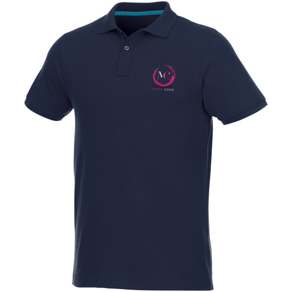 Pánska organická recyklovaná polokošeľa s krátkym rukávom Beryl. Udržateľné reklamné predmety. Udržateľné kovové gombíky. Plochý rebrový golier. Rebrový úplet manžetiek. Na dva gombíky. Priekrčník v dvoch farbách. Dvojité stehovanie. Piqué úplet zo 70% organickej bavlny a 30% recyklovaného polyesteru. 220 g / m².
