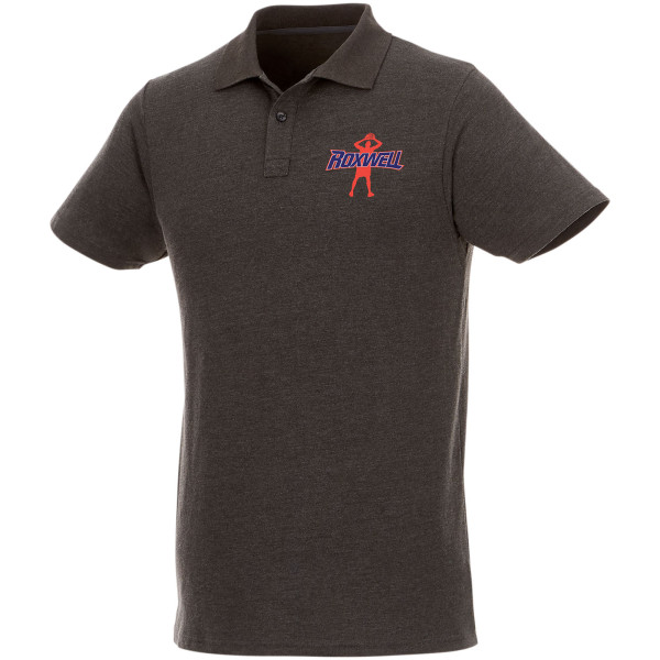 Pánska polokošeľa s krátkym rukávom Helios. Možnosť značenia vnútri. Odtrhávací štítok pre väčšie pohodlie. Plochý rebrový golier. Na dva gombíky. Dvojité stehovanie. Farebne ladené gombíky. Spevňujúce kontrastné lemovanie výstrihu. Piké úplet zo 100% bavlny. 180 g / m².