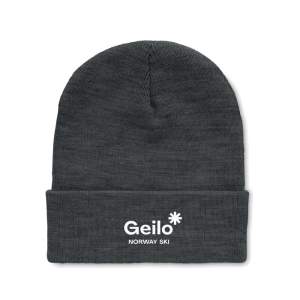Unisex pletená čapica z mäkkého strečového polyesteru RPET. Vyhrnutý okraj.