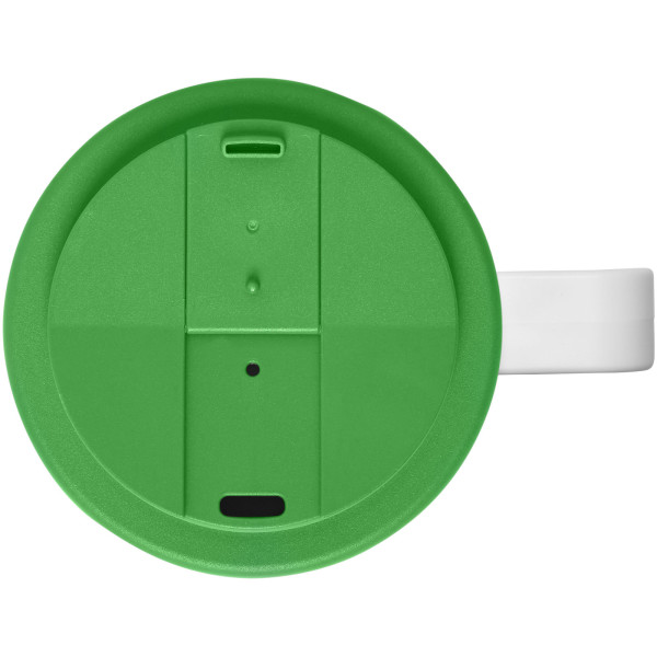 Termo hrnček so skrutkovacím, odolným proti rozliatiu vekom a dvojitou stenou. Hrnček sa vyznačuje plnofarebným dizajnom prispôsobeným výrobku, ktorý ho robí odolným s dlhou životnosťou. Zaklapávacie viečko zabraňuje rozliatiu a utesnenie bez silikónu. Môžete kombinovať farby a vytvoriť si svoj dokonalý hrnček. Kontaktujte nás pre ďalšie možnosti farieb. Vyrobené vo Veľkej Británii. Dodávaný v bielej darčekovej krabičke.