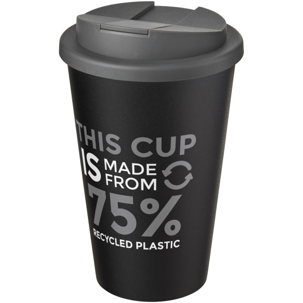 Hrnček s tepelnou izoláciou s bezpečným nasadzovacím vekom proti rozliatiu s dvojitou stenou. Uzavreté spony veka lepšie zabraňujú rozliatiu a sú vyrobené bez silikónu pre plne recyklovateľný hrnček. Vyrobené zo 100% recyklovaného PP plastu, viečko je vyrobené z potravinárskeho PP plastu. Objem 350 ml. Obal možno kompostovať v domácich podmienkach. Vyrobené v Spojenom kráľovstve.