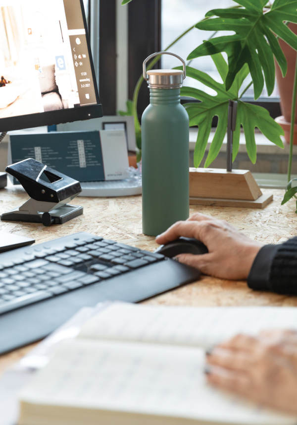 Moderná nerezová fľaša s bambusovým uzáverom - XD Collection