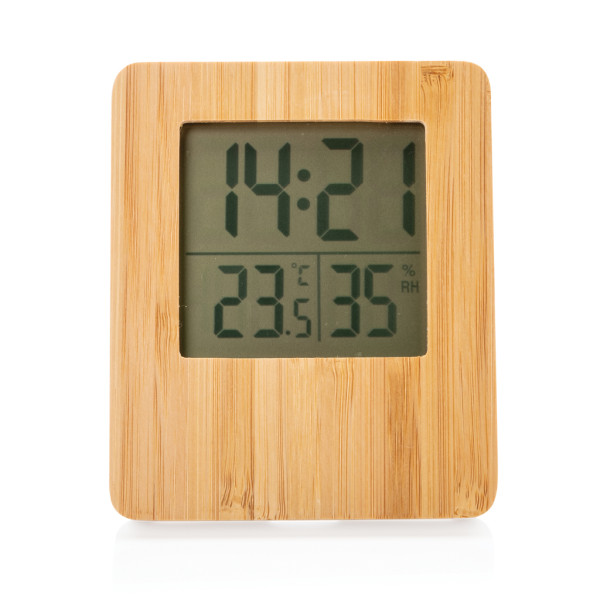 Meteorologická stanica s 3 funkciami: čas/dátum, vnútorná teplota a vlhkosť (tolerancia 5%). Vyrobené z bambusu a ABS. Vrátane 2 AAA batérií pre priame použitie.