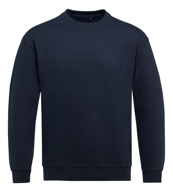·280 g/m² ·50% bavlna, 50% polyester ·Heather Grey: 78% bavlna, 22% polyester ·spevňujúca páska okolo krku ·rebrované manžety, lem okolo krku a spodný okraj ·dvojité prešívanie ·bočné švy ·štýl bez štítku, len veľkostný štítok na boku vzadu pri krku ·možno prať na 60 °C ·farba CHARCOAL je premenovaná na DARK GREY, farba NAVY je premenovaná na DARK NAVY (menia sa len názvy, farby zostávajú rovnaké)
