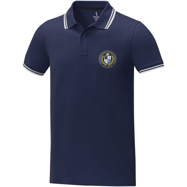 Plochý rebrový golier. Kontrastne farebný lem na golieri a rukávoch. Zapínanie na dva gombíky. Detaily s vyšívacím stehom. Saténová lemovka výstrihu. Bočné rázporky so saténovou lemovkou. Sedlo. Predsunutá spevňujúca lemovka výstrihu s retiazkovým švom. Gravírované gombíky v rovnakej farbe. Potlač štítku technológií heat transfer pre väčšie pohodlie.