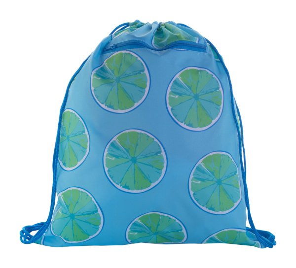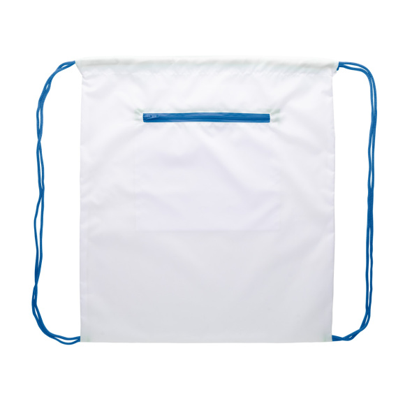 Na mieru vyrobená taška so šnúrkou na zips, predné vrecko chránené RFID, polyester 190T. S celoplošnou sublimačnou potlačou grafiky. MOQ: 25 ks.