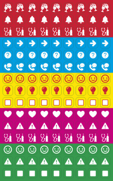 3 archy samolepiek na jednoduché rozvrhnutie bloku, vytváranie zoznamov a nadpisov, na zvýraznenie bodov a udalostí (design samolepiek sa môže líšiť)