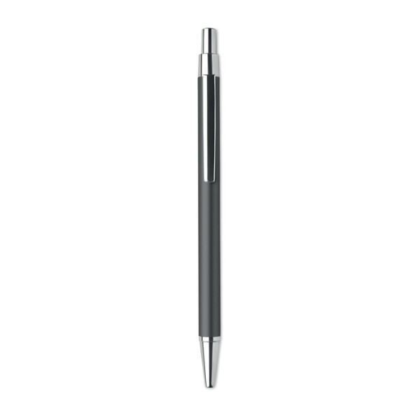 Tlačidlové guľôčkové pero z recyklovaného hliníka. Modrý atrament.