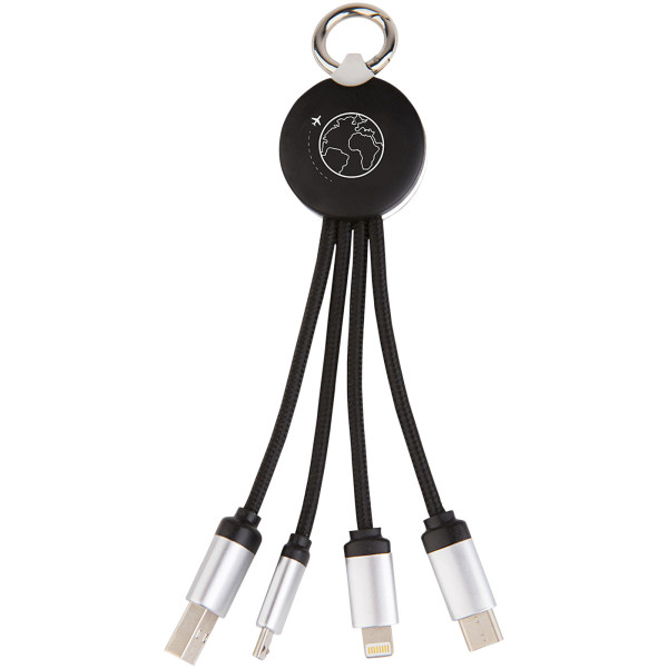 Dobíjací kábel so svetelným logom, gumovým povrchom, kovovými doplnkami a tromi výstupnými konektormi (USB-C, Android, iPhone). Je možné nabíjať až tri zariadenia súčasne. Dĺžka káblov (vrátane zástrčiek): 10 cm. Recyklovaný PET kábel a obal sú vyrobené z recyklovaného papiera a recyklovaného plastu.