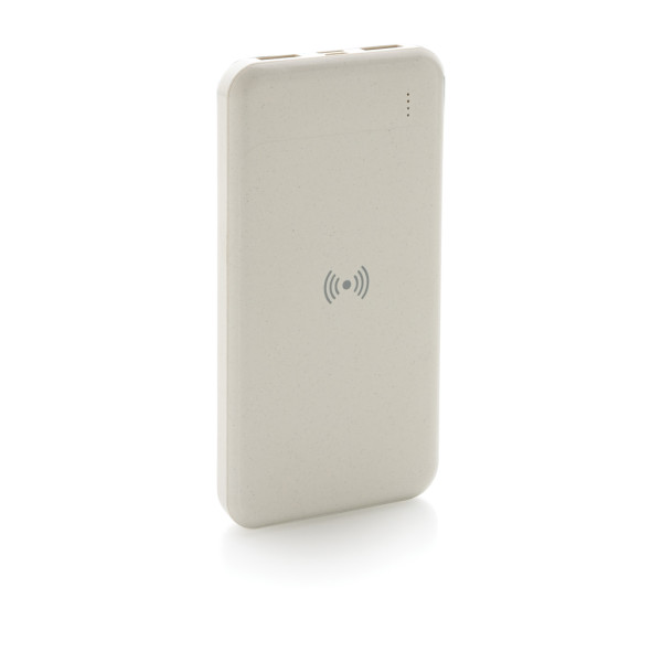 Bezdrôtová 5W powerbanka s kapacitou 8 000 mAh vyrobená z recyklovaného ABS plastu s RCS certifikáciou. RCS (Recycled Claim Standard) je globálny štandard, ktorý umožňuje overiť použitie recyklovaného materiálu v produkte naprieč celým dodávateľským reťazcom. Celkový podiel recyklátu podľa váhy produktu: 22%. Kvalitná lítium polymérová batéria radu A s kapacitou 8 000 mAh plne nabije mobilný telefón až 4x. Svetelné indikátory stupňa nabitia. Micro USB vstup: 5V/2A, USB C vstup: 5V/2A. 2x USB výstup: 5V/2A, bezdrôtový výstup: 5W. Vrátane nabíjacieho kábla z recyklovaného TPE. Výrobok je kompletne bez PVC.