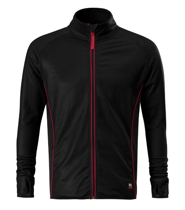 Hladký strečový rýchloschnúci materiál, rovný strih s bočnými švami, celozapínací reverzný špirálový zips s krytkou brady, vnútorný priekrčník začistený páskou, raglánové rukávy, manžety s otvorom pre palec, vrecká na zips, lemovanie elastickým pásikom, kontrastné prvky, pútko na zavesenie. Mikropolar, 100 % poliester z recyklingu.