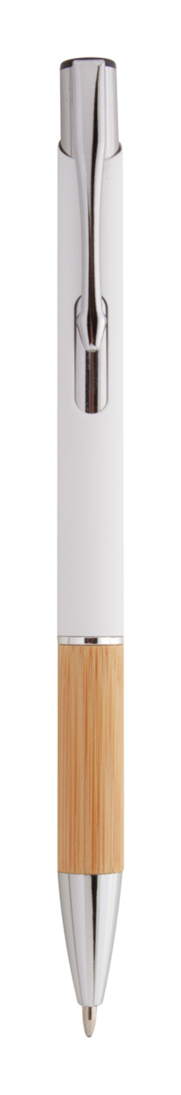 Hliníkové guľôčkové pero s bambusovým úchopom, pogumovaným povrchom a modrou náplňou. So špeciálnou vrstvou na zrkadlové laserové gravírovanie.