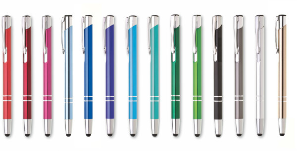 Obľúbené kovové guľôčkové pero ORIN s mäkkým hrotom pre dotykové displeje . Lesklé farebné telo je doplnené o chrómované časti. Modrá náplň veľkoobjemová.