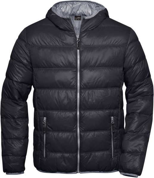 Pánska páperová bunda James & Nicholson Mens Down Jacket, Ultra ľahká páperová bunda s kapucňou v ležérnom štýle, Vonkajší materiál: 100% polyamid, Podšívka: 100% polyamid, Mäkká, ľahká, vetru a vode odpudzujúca tkanina, Dvojité švy, Kontrastné vnútorné prešitie rukávy a spodný lem v kontrastnej farbe, 2 bočné vrecká na zips, 2 vnútorné vrecká Balenie: 1/20, (ks v jednom sáčku / celkom ks v kartóne)