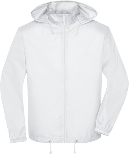 Vetrovka pre reklamu i voľný čas, Ľahká, vode a vetru odolná tkanina, Vodný stĺpec 600 mm, V golieri je kapucňa so šnúrkou, Bundu je možné zložiť a zabaliť do jedného z vreciek 1/50, (ks v jednom sáčku / celkom ks v kartóne )
