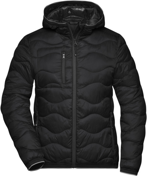 Prešívaná bunda s výplňou DuPont™Sorona®, Vode a vetru odolný materiál, dizajnovo prešitá, Kapucňa so sťahovacími šnúrkami, Na rukávoch, pri páse a kapucni je ozdobný lem, 2 bočné vrecká a jedno náprsné vrecko na zips, Dve vnútorné vrecká, Zip značkový - YKK, 1/30 (ks v jednom sáčku / celkom ks v kartóne)