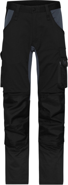 Pracovné nohavice s elastickými doplnkami v slim strihu, Robustný a odolný mix materiálov - recyklovaný polyester a bio-bavlna s elastanom, Veľmi pohodlné na nosenie vďaka elastickým doplnkom, Pútka na opasok, Kolenné diely a niektoré vrecká sú z materiálu CORDURA®, Na namáhaných miestach trojité šitie, 1 vrecko na zips, rôzne vrecká a pútka na náradie a mobilný telefón, Materiál 1: 65% polyester (recyklovaný), 32% bavlna, 3% elastan, Gramáž: 260g/m2, Materiál 2: 94% polyamid, 6 % elastan, Doplnky: 100% polyamide, Značkové zipsy - YKK, 1/20 (ks v jednom sáčku / celkom ks v kartóne) ​