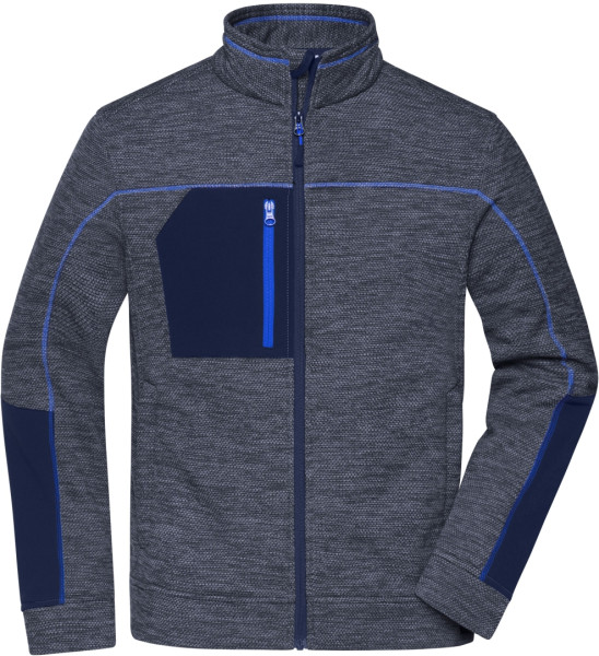 Zapletaná fleecová bunda pre prácu i voľný čas, Mäkký a teplý materiál s jednoduchou údržbou v melange vzhľade, Zvonku hladký a štruktúrovaný vzhľad, vo vnútri mäkký a pohodlný, 2 bočné vrecká so skrytým zipsom, 2 vnútorné vrecká, Náprsné vrecko a časti rukávov v kontrastnej farbe, Zips náprsného vrecka a ozdobné švy sú v inej konstrastnej farbe, Stojací golier, zips s ochranou brady, Značkové zipsy - YKK, 1/30 (ks v jednom sáčku / celkom ks v kartóne) ​