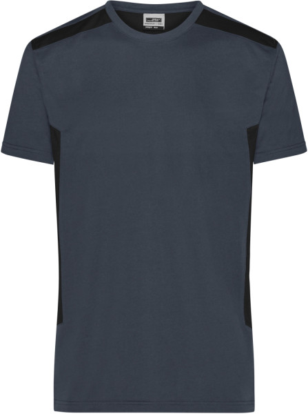 Odolné pracovné tričko s farebnými doplnkami, Materiál je zo zmesi recyklovaného polyesteru a bio-bavlny, Náplet na krku je s elastanom, Prateľnosť na 60°C, vhodné na sušenie v sušičke, 5/10 (ks v jednom sáčku / celkom ks v kartónu) ​