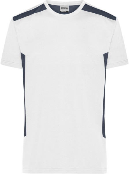 Odolné pracovné tričko s farebnými doplnkami, Materiál je zo zmesi recyklovaného polyesteru a bio-bavlny, Náplet na krku je s elastanom, Prateľnosť na 60°C, vhodné na sušenie v sušičke, 5/10 (ks v jednom sáčku / celkom ks v kartónu) ​