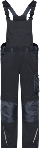 Pracovné nohavice s trakmi a elastickými doplnkami v slim strihu, Robustný a odolný mix materiálov - recyklovaný polyester a bio-bavlna s elastanom, Veľmi pohodlné na nosenie vďaka elastickým doplnkom, Pútka na opasok, Kolenné diely a niektoré vrecká sú z materiálu CORDURA®, Na namáhaných miestach trojité šitie, 2 vrecká na zips, rôzne vrecká a pútka na náradie a mobilný telefón, Pružné traky cez ramená, Reflexné prvky (necertifikované ako ochranný prvok), Značkové zipsy - YKK, Prateľnosť na 60°C, vhodné na sušenie v sušičke, 1/20 (ks v jednom sáčku / celkom ks v kartóne) ​