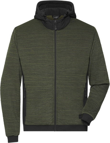 Zateplená, pletená, fleecová bunda, Úplet v kombinácii s elastickým rebrovaním, Zateplená výplň DuPont™Sorona®, V rukávoch elastická podšívka, nastaviteľná kapucňa, Podložený zips s ochraou brady, 2 bočné vrecká, 1 vnútorné vrecko na suchý zips, Elastické lemovanie koncov rukávov a pri páse, Značkový zips - YKK Počet kusov v balení: 1/10 ks (v jednom sáčku / celkom v kartóne)