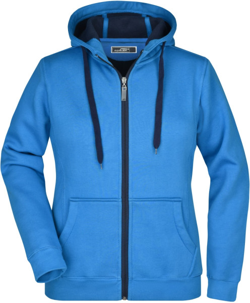 Dámska mikina James & Nicholson s kapucňou, vonkajší materiál: 100% bavlna, Podšívka: 100% polyester, Zips, šnúrky a vnútro v kontrastnej farbe, Kapucňa s ochranou brady, Rukávy a pás s elastanom, klokanie vrecko, ploché švy, Zúžený tvar, Hmotnosť: 380 g / m2, Balenie: 1/25 (ks v jednom sáčku / celkom ks v kartóne)