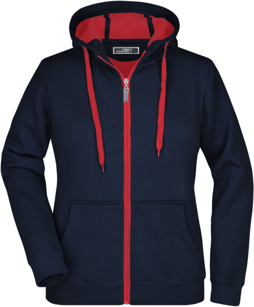 Dámska mikina James & Nicholson s kapucňou, vonkajší materiál: 100% bavlna, Podšívka: 100% polyester, Zips, šnúrky a vnútro v kontrastnej farbe, Kapucňa s ochranou brady, Rukávy a pás s elastanom, klokanie vrecko, ploché švy, Zúžený tvar, Hmotnosť: 380 g / m2, Balenie: 1/25 (ks v jednom sáčku / celkom ks v kartóne)