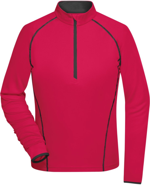 Tričko na šport i fitnes s dlhým rukávom, Priedušné, rýchloschnúce, ľahké a pohodlné, Vpredu i vzadu reflexné švy, Raglánové rukávy a golier stojačik, Vnútro goliera a manžiet pri rukávoch v kontrastnej farbe, Pri zipse ochrana brady, 1/50 (ks v jednom sáčku / celkom ks v kartóne)