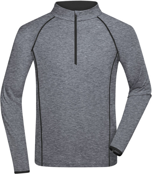 Tričko na šport i fitnes s dlhým rukávom, Priedušné, rýchloschnúce, ľahké a pohodlné, Vpredu i vzadu reflexné švy, Raglánové rukávy a golier stojačik, Vnútro goliera a manžiet pri rukávoch v kontrastnej farbe, Pri zipse ochrana brady, 1/50 (ks v jednom sáčku / celkom ks v kartóne)
