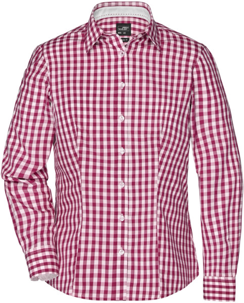 Dámska košeľa James & Nicholson Ladies Checked Shirt, Módna košeľa s dlhým rukávom v rôznych farbách, Vonkajší materiál: 100% Bavlna, Vysoko kvalitný popelín, ľahko sa žehlí a ľahko udržuje, Zaoblený lem, Zúžený, ženský strih, 100 g / m2, Balenie: 5/20 (ks v jednom sáčku / celkom ks v kartóne)