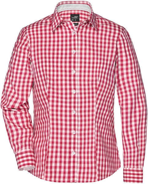 Dámska košeľa James & Nicholson Ladies Checked Shirt, Módna košeľa s dlhým rukávom v rôznych farbách, Vonkajší materiál: 100% Bavlna, Vysoko kvalitný popelín, ľahko sa žehlí a ľahko udržuje, Zaoblený lem, Zúžený, ženský strih, 100 g / m2, Balenie: 5/20 (ks v jednom sáčku / celkom ks v kartóne)