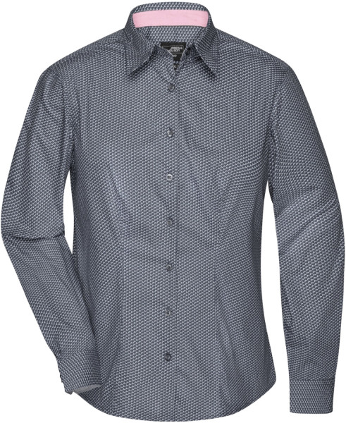 Dámska košeľa so vzorkou a vsadenými farebnými detailmi, Vysoko kvalitný popelín, easy-care, ľahké žehlenie, Kontrastné farebné detaily na rube goliera a manžiet, Kontrastné gombíky, 5/4 (ks v jednom sáčku / celkom ks v kartóne) ​