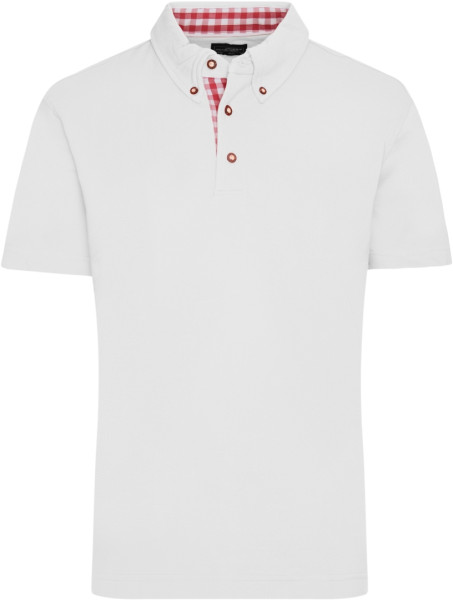 Polo v dizajne tradičného nemeckého kroja, Módne polo s farebnou vložkou, Príjemná klasická piqué tkanina, Gombíky na golieri, Kontrastná vložka vo vnútri goliera, pod gombíky a v bočných rozparkoch, 3 gombíky v dizajne rohoviny, 1/50 (ks v jednom sáčku ks v kartóne) ​