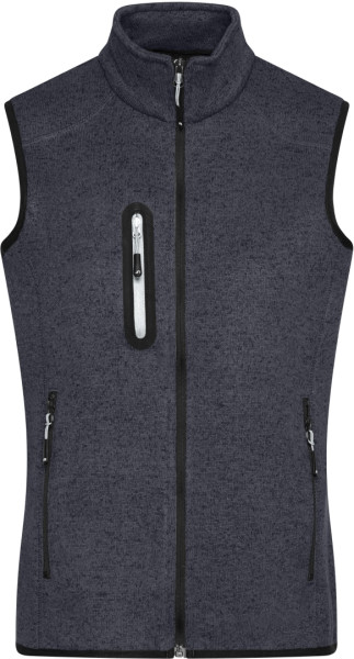 Módna vesta z pleteného fleecu v melírovanom vzhľade, Hladký, teplý a ľahko udržiavateľný materiál, Vonkajšia strana v pletenom vzhľade, vo vnútri zdrsnená, mäkká a nadýchaná, Stojací golier, vrecká na stranách aj náprsné vrecko na zips, 1/30 (ks v jednom / celkom ks v kartóne) ​