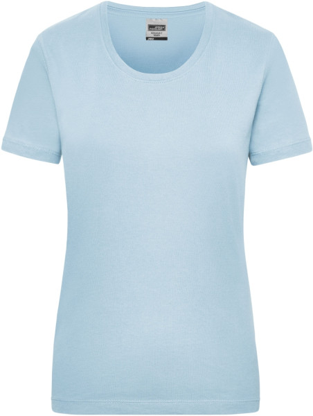 Odolné klasické dámske tričko James & Nicholson, vonkajší materiál: 100% bavlna, Predpraná vysoko kvalitná tkanina, ktorá udržuje tvar, Strih umožňuje optimálny priestor pre pohyb, Dvojité prešitie pre vysokú stabilitu, Biele možno prať pri 95°C, Farebné možno prať pri 60°C, vhodné pre sušenie v sušičke, Hmotnosť: 190-200 g / m2, Balenie: 10/100 (ks v jednom sáčku / celkom ks v kartóne)