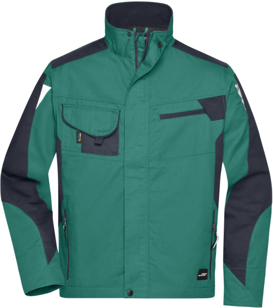 Pánska pracovná bunda James & Nicholson Workwear Jacket, Profesionálna bunda s vysokou kvalitou vybavenia, Vonkajšia látka: 65% polyester, 35% bavlna, Vonkajší materiál 2: 100% polyamid, Robustná a odolná zmesová tkanina, Stojací golier s mäkkým rúnom vo vnútri, Ramenná časť vystužená Cordura predný zips s veternou ochranou, Zeteplené rukávy, Priestranné vetracie otvory na zadnej strane, Bočné vrecká, náprsné vrecko a vnútorné vrecko na zips, Náprsné vrecko s chlopňou, vrecko na mobilný telefón vo vnútri, Reflexné prvky na prednej a zadnej strane, Balenie: 1/20 (ks v jednom sáčku / celkom ks v kartóne)