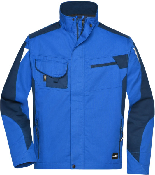 Pánska pracovná bunda James & Nicholson Workwear Jacket, Profesionálna bunda s vysokou kvalitou vybavenia, Vonkajšia látka: 65% polyester, 35% bavlna, Vonkajší materiál 2: 100% polyamid, Robustná a odolná zmesová tkanina, Stojací golier s mäkkým rúnom vo vnútri, Ramenná časť vystužená Cordura predný zips s veternou ochranou, Zeteplené rukávy, Priestranné vetracie otvory na zadnej strane, Bočné vrecká, náprsné vrecko a vnútorné vrecko na zips, Náprsné vrecko s chlopňou, vrecko na mobilný telefón vo vnútri, Reflexné prvky na prednej a zadnej strane, Balenie: 1/20 (ks v jednom sáčku / celkom ks v kartóne)