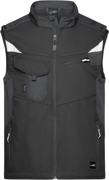 Odolná PRACOVNÁ Softshellová vesta, Vode a vetru odolná, Vodný stĺpec 2.000 mm, paropriepustnosť (2.000g/m2/24h), Časti bundy sú z materiálu Cordura, Zips s chlopňou, bočné vrecká na zips, náprsné vrecko, vnútorné vrecká, Reflexné detaily na rukávoch a na chrbte, Balenie: 1/20 (ks v jednom sáčku / celkom ks v kartóne) ​