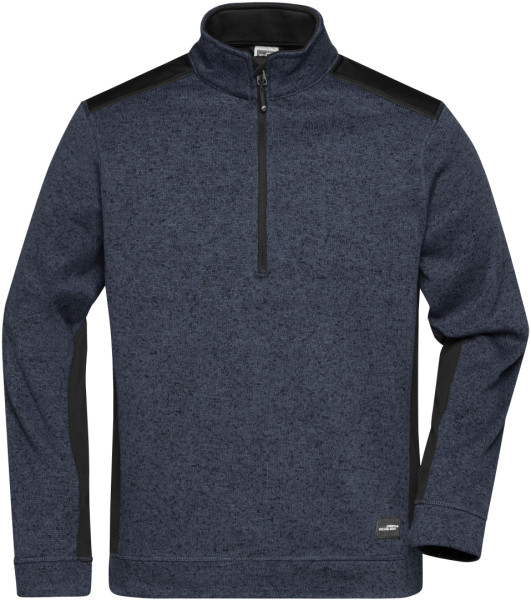 Pracovná mikina z pleteného fleece, Teplá a jemná tkanina v melange prevedení, Elastické softshellové doplnky na bokoch, ramenách a rukávoch, 2 postranné vrecká na zips, Zips do polovice, ochrana brady, Golier stojačik, 10/30 (ks v jednom sáčku / celkom ks v kartóne)