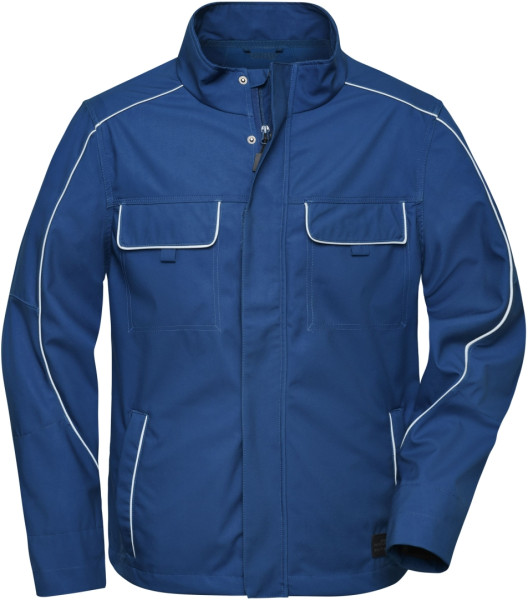 Profesionálna pracovná bunda v klasickom vzhľade, Odolný a ľahký softshell (250g/m2), Vode a vetru odolná (2 000 mm vodný stĺpec, priedušnosť 2 000g/m2/24h), Stojací golier, predĺžený zadný diel, Ergonomický tvar rukávov, s ochranou krku, Bočné vrecká na zips, Náprsné vrecká (zvnútra neprišité - vhodné pre výšivku, vnútorné vrecká, Reflexné prvky na vreckách a prednom aj zadnom diele (necertifikované ako ochranný prvok), Všetky cvočky, gombíky alebo zipsy sú skryté, aby nedošlo k odreniu, Značkové zipsy - YKK, 1/20 (ks v jednom sáčku / celkom ks v kartóne) ​