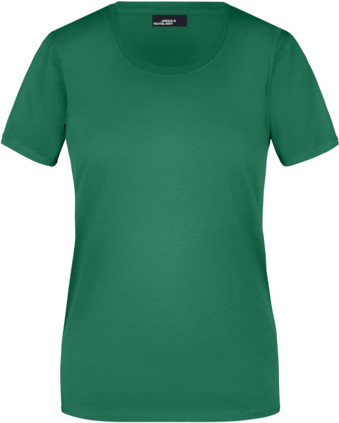 Dámske tričko James & Nicholson s okrúhlym výstrihom, vonkajší materiál: 100% Bavlna, Dvojité prešitie na ramenách, dekolte, Hmotnosť: 150 g / m2, Balenie: 10/100 (ks v jednom sáčku / celkom ks v kartóne) ​