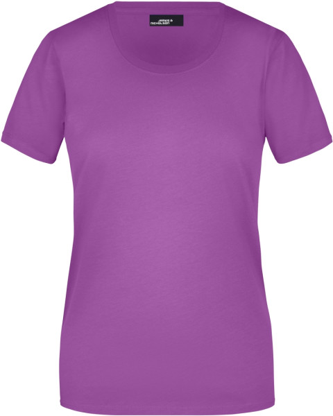 Dámske tričko James & Nicholson s okrúhlym výstrihom, vonkajší materiál: 100% Bavlna, Dvojité prešitie na ramenách, dekolte, Hmotnosť: 150 g / m2, Balenie: 10/100 (ks v jednom sáčku / celkom ks v kartóne) ​