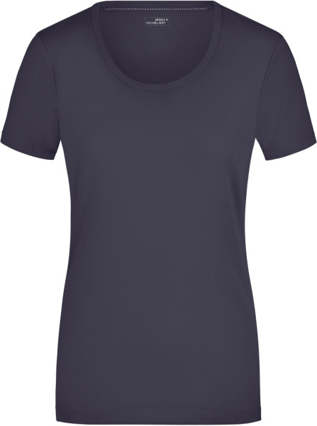 Elastické dámske tričko James & Nicholson s okrúhlym výstrihom, vonkajší materiál: 95% Bavlna, 5% Elastan, Mäkká elastická tkanina, Hlboký výstrih, Voľný strih, Nová dĺžka: Veľkosť M 64 cm, Hmotnosť: 160-170 g / m2, Balenie: 10/5 (ks v jednom sáčku / celkom ks v kartóne) ​