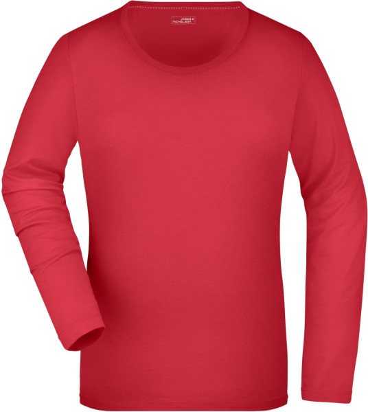 Elastické dámske tričko James & Nicholson s dlhým rukávom, Vonkajší materiál: 95% Bavlna, 5% Elastan, Mäkká elastická tkanina, Hlboký výstrih, Voľný strih, Nová dĺžka: Veľkosť M 64 cm, Hmotnosť: 160-170 g / m2, Balenie: 10/50 (ks v jednom sáčku / celkom ks v kartóne)