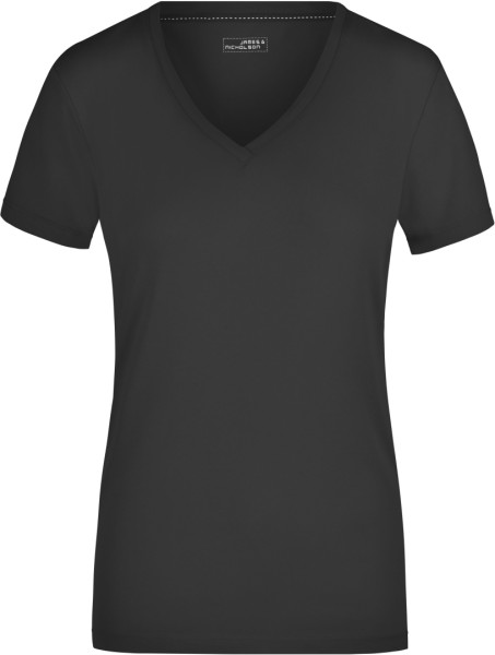 Elastické dámske tričko James & Nicholson s výstrihom do V, vonkajší materiál: 95% Bavlna, 5% Elastan, Mäkká elastická tkanina, Výstrih do V, Voľný strih, Nová dĺžka: Veľkosť M 64 cm, Hmotnosť: 160-170 g / m2, Balenie: 10/50 (ks v jednom sáčku / celkom ks v kartóne) ​