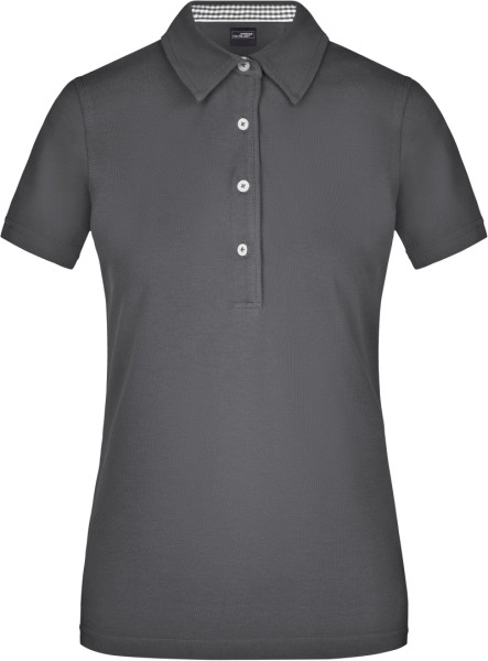 Dámske polo, Módny štvorčekový pruh pod gombíkmi vo výstrihu a okolo krku, Veľmi jemné piqué, 4 gombíky, Balenie: 1/50 (ks v jednom sáčku / celkom ks v kartóne) ​