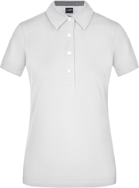 Dámske polo, Módny štvorčekový pruh pod gombíkmi vo výstrihu a okolo krku, Veľmi jemné piqué, 4 gombíky, Balenie: 1/50 (ks v jednom sáčku / celkom ks v kartóne) ​